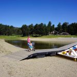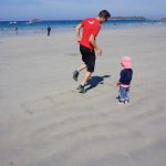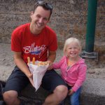 Nächster Stopp war Roscoff. Eine typisch bretonische Stadt mit Hafen in dem die Boote bei Ebbe auf dem Trockenen liegen und einer Innenstadt mit alten Granitsteinhäuschen. Unser Highlight war aber die zum Nationalfeiertag stattfindende kleine Kirmes. Hannah war glücklich auf einem kleinen Autozug und die ganze Familie hatte Spaß Münzen in einen Glücksspielautomaten zu werfen. Zum Abschluss haben wir noch eine Tüte Chi Chi mit warmer Nutella gekauft. Das waren 12 (kleiner gab es nicht) frisch frittierte Hefeteig Riesenfritten. Lecker, aber nach 8 Stück war es uns dann über…