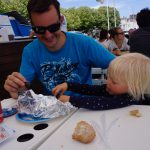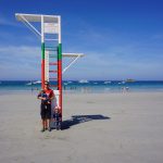Das nächste Ziel war Concarneau – Dupins neue Heimat im Finistere mussten wir uns natürlich anschauen. Da beide Kinder auf der Fahrt dort hin sehr spät und ausgiebig einen Mittagschlaf gemacht hatten sind wir abends noch ins “Städtchen” gelaufen und haben sehr lecker zu Abend gegessen. Nicht im L’Amiral sondern im Herzen der netten Altstadt am Hafen. Es hat uns so gut gefallen, dass wir noch einen Tag geblieben sind. Tagsüber sind wir nochmal dort auf den Markt gegangen und am Strand vorbei. Ein Stopp in der Apotheke für irgendetwas gegen den ständigen Juckreiz musste auch sein! Mit Babyphone hatten wir dann noch einen netten Abend mit Livemusik. Eine Gitarre, ein Bass, zwei Stimmen mit Englischen Evergreens mit französischen Akzent – sehr liebenswert.