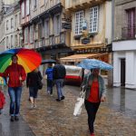 Über Quimper sind wir weiter in die Bucht von Duarnenez. Leider hat es an dem Tag einen dauerhaften Sprühregen, so dass wir uns in Quimper nur die wirklich schöne Kathedrale und ein Café angeschaut haben. Und trotz Regenschirmen sind wir wieder naß am Wohnmobil angekommen.