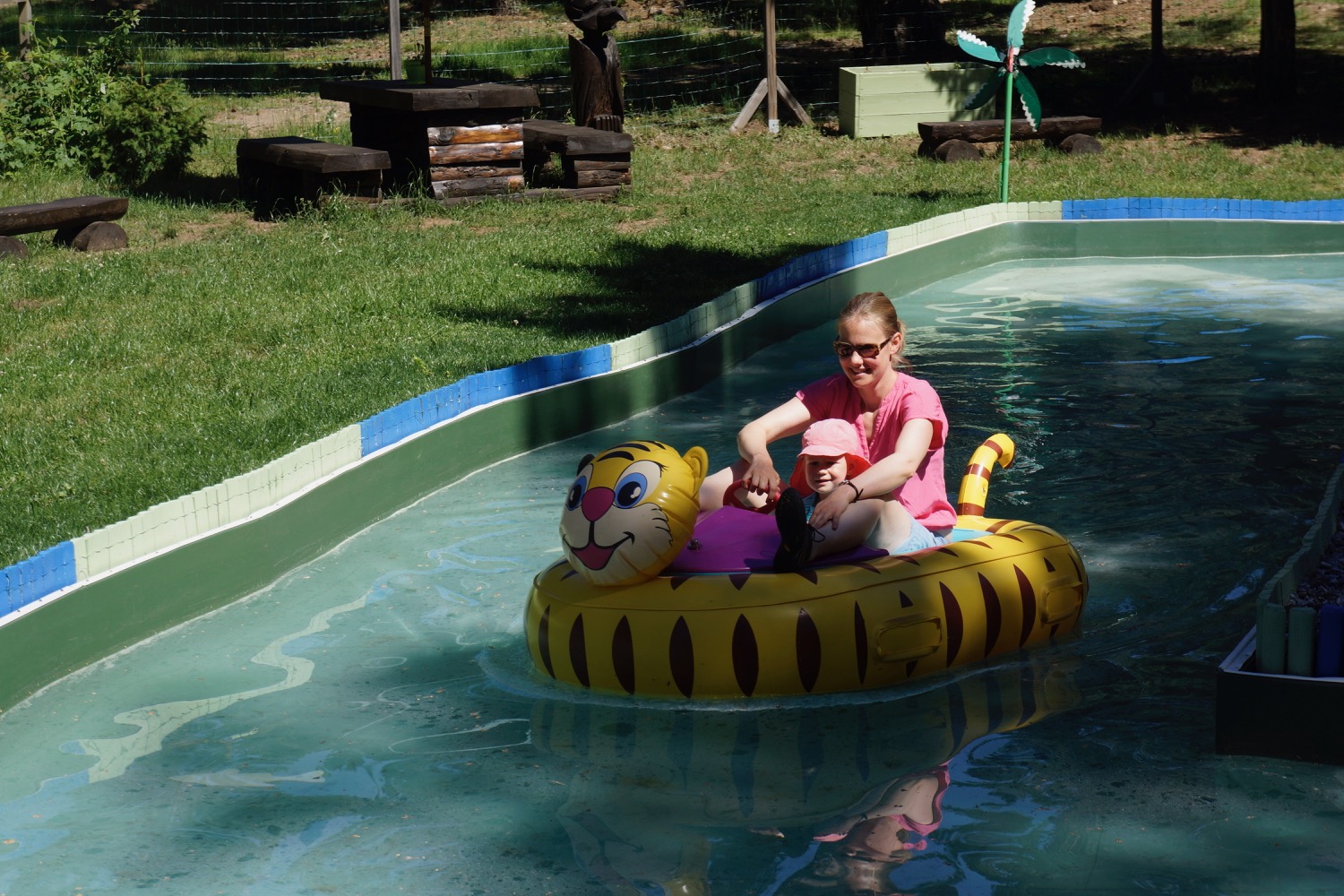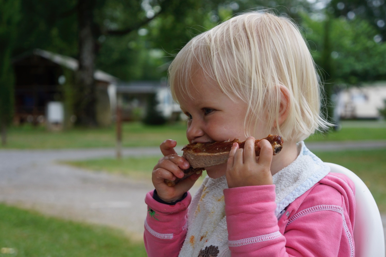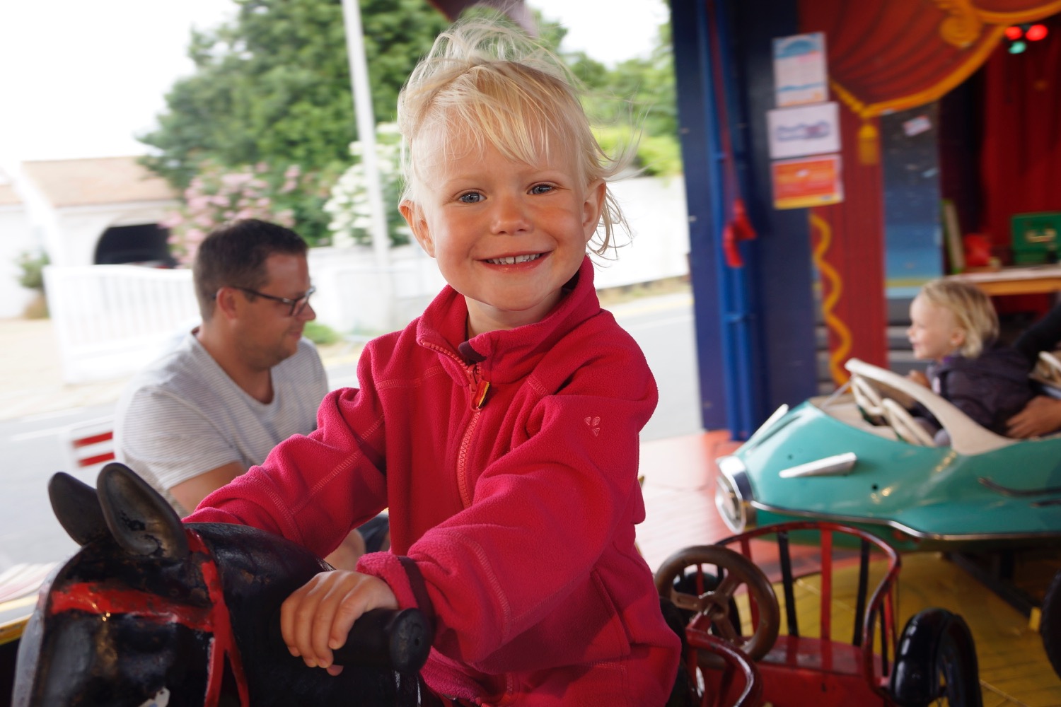 Nächster Stopp war Roscoff. Eine typisch bretonische Stadt mit Hafen in dem die Boote bei Ebbe auf dem Trockenen liegen und einer Innenstadt mit alten Granitsteinhäuschen. Unser Highlight war aber die zum Nationalfeiertag stattfindende kleine Kirmes. Hannah war glücklich auf einem kleinen Autozug und die ganze Familie hatte Spaß Münzen in einen Glücksspielautomaten zu werfen. Zum Abschluss haben wir noch eine Tüte Chi Chi mit warmer Nutella gekauft. Das waren 12 (kleiner gab es nicht) frisch frittierte Hefeteig Riesenfritten. Lecker, aber nach 8 Stück war es uns dann über…