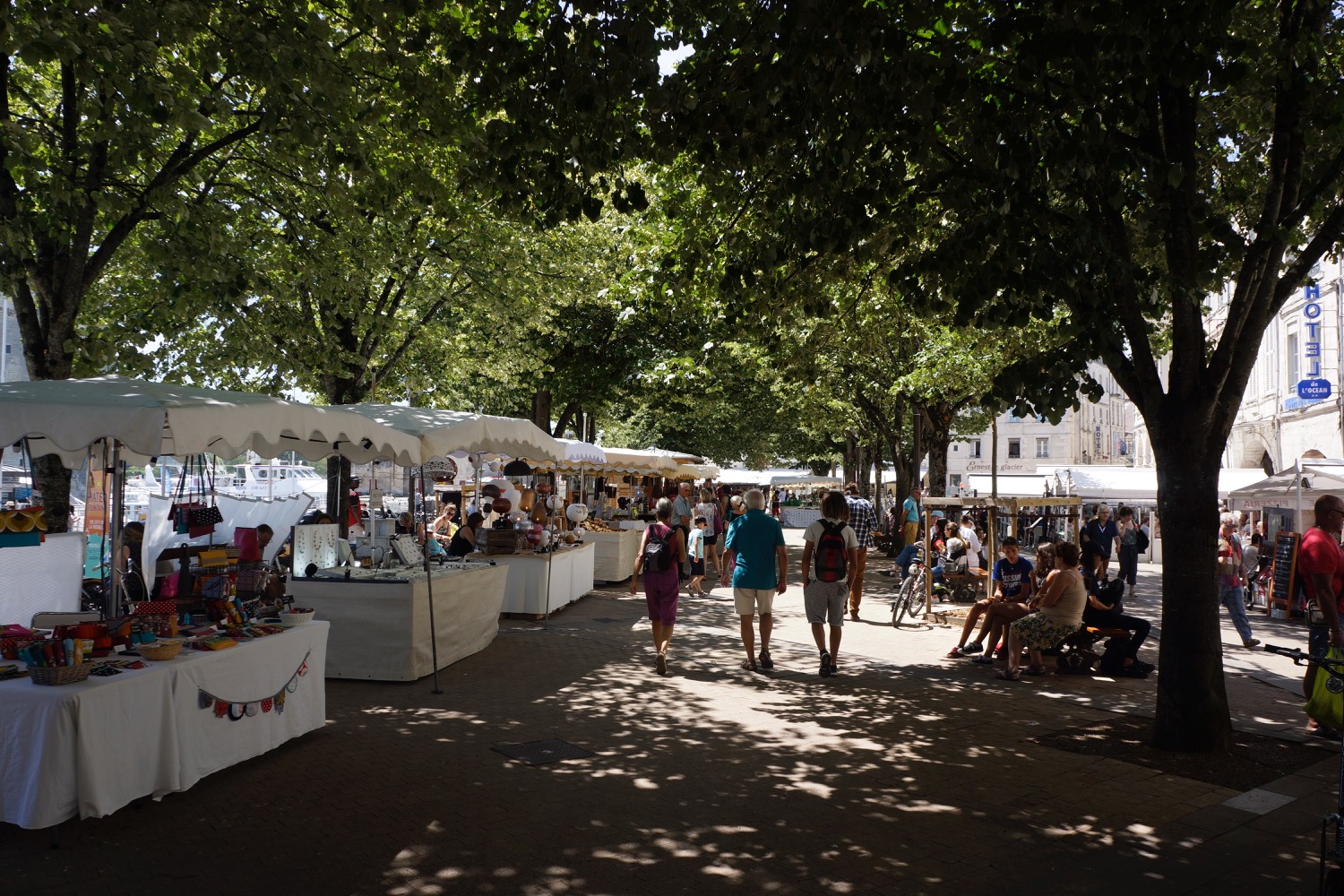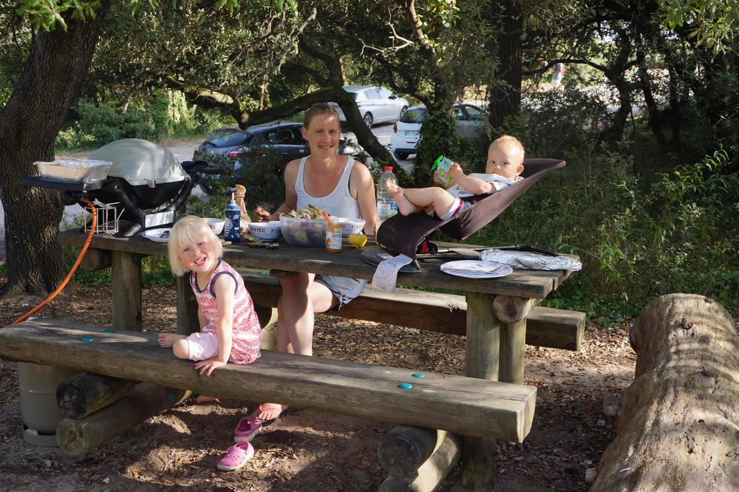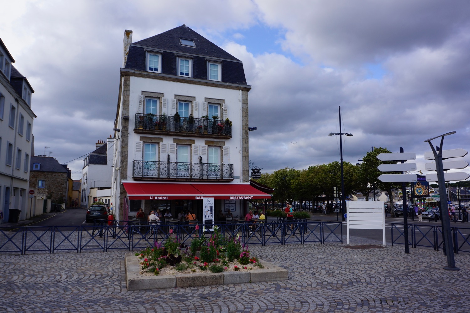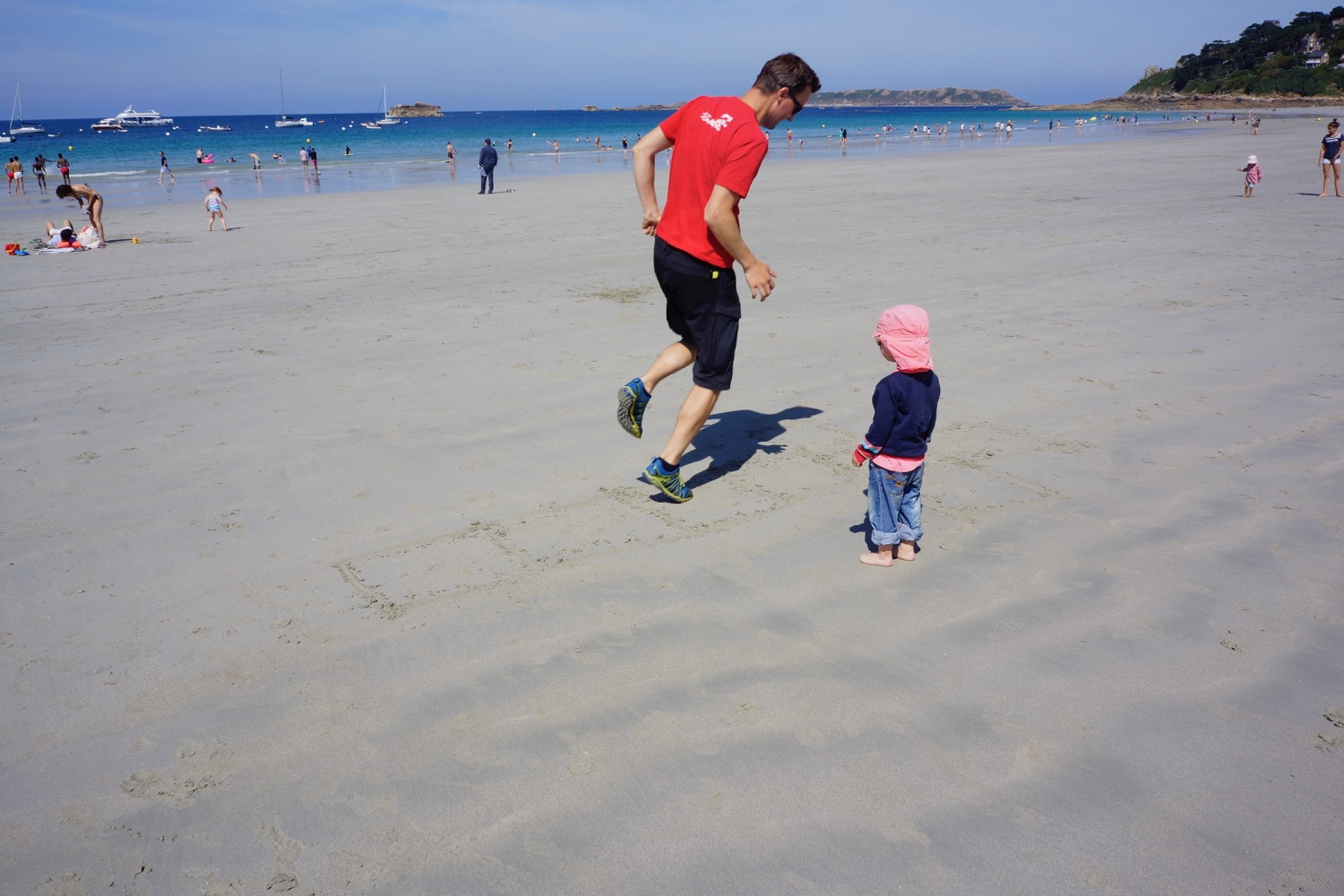 Das nächste Ziel war Concarneau – Dupins neue Heimat im Finistere mussten wir uns natürlich anschauen. Da beide Kinder auf der Fahrt dort hin sehr spät und ausgiebig einen Mittagschlaf gemacht hatten sind wir abends noch ins “Städtchen” gelaufen und haben sehr lecker zu Abend gegessen. Nicht im L’Amiral sondern im Herzen der netten Altstadt am Hafen. Es hat uns so gut gefallen, dass wir noch einen Tag geblieben sind. Tagsüber sind wir nochmal dort auf den Markt gegangen und am Strand vorbei. Ein Stopp in der Apotheke für irgendetwas gegen den ständigen Juckreiz musste auch sein! Mit Babyphone hatten wir dann noch einen netten Abend mit Livemusik. Eine Gitarre, ein Bass, zwei Stimmen mit Englischen Evergreens mit französischen Akzent – sehr liebenswert.
