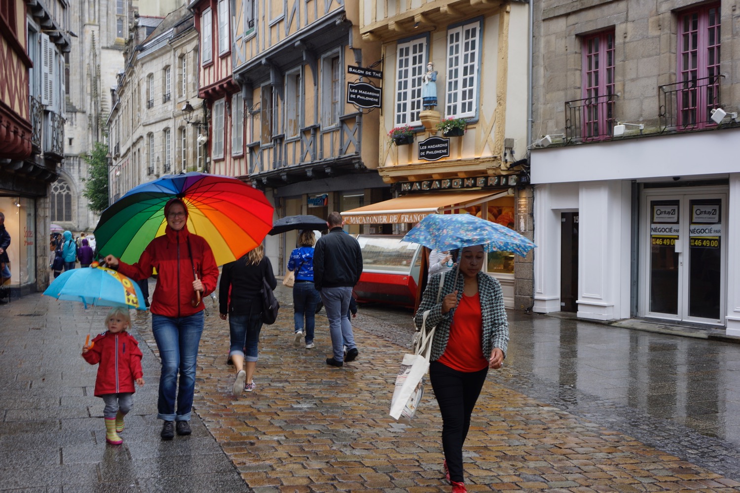 Über Quimper sind wir weiter in die Bucht von Duarnenez. Leider hat es an dem Tag einen dauerhaften Sprühregen, so dass wir uns in Quimper nur die wirklich schöne Kathedrale und ein Café angeschaut haben. Und trotz Regenschirmen sind wir wieder naß am Wohnmobil angekommen.