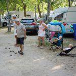 Der richtige Campingplatz war dann auch wirklich schön mit Pool, Trampolin und ruhigen Stellplätzen. Kurz nach der Ankunft hat Hannah dann auch Bekanntschaft mit Jonas (4) gemacht. Die beiden sind aus dem gleichen Holz geschnitzt und haben sich sofort prima verstanden. Beide waren sichtlich froh einen Spielkameraden im gleichen Alter zu haben und sind in jeder freien Minute gemeinsam über den Campingplatz gezogen. Auch mit den Eltern haben wir uns gut verstanden und Moritz hat sich über den kleinen Yannik (12 Monate) gefreut. Sehr entspannend wie alle vier Kinder in der Hüpfburg waren und wir davor in Ruhe quatschten konnten.