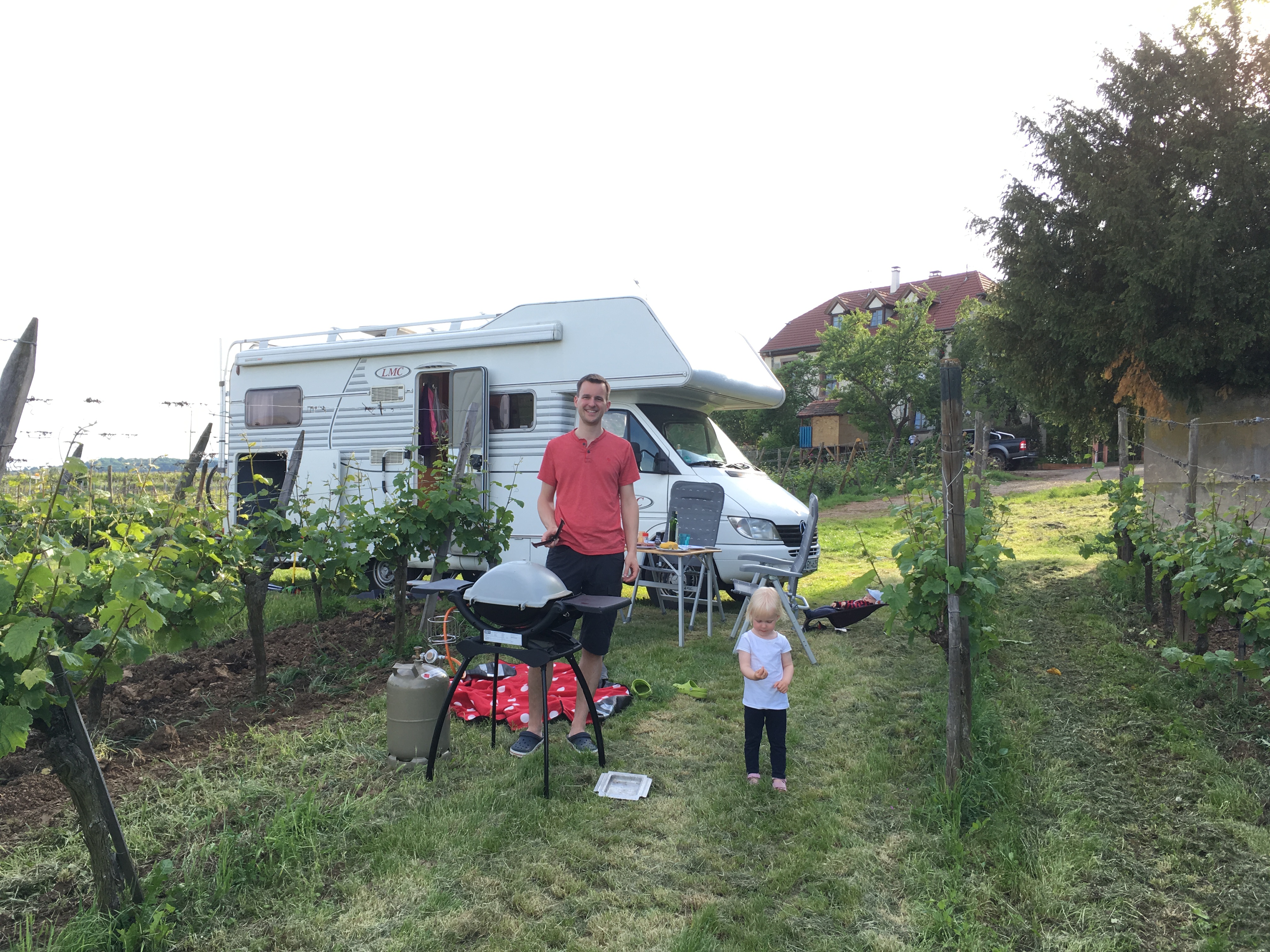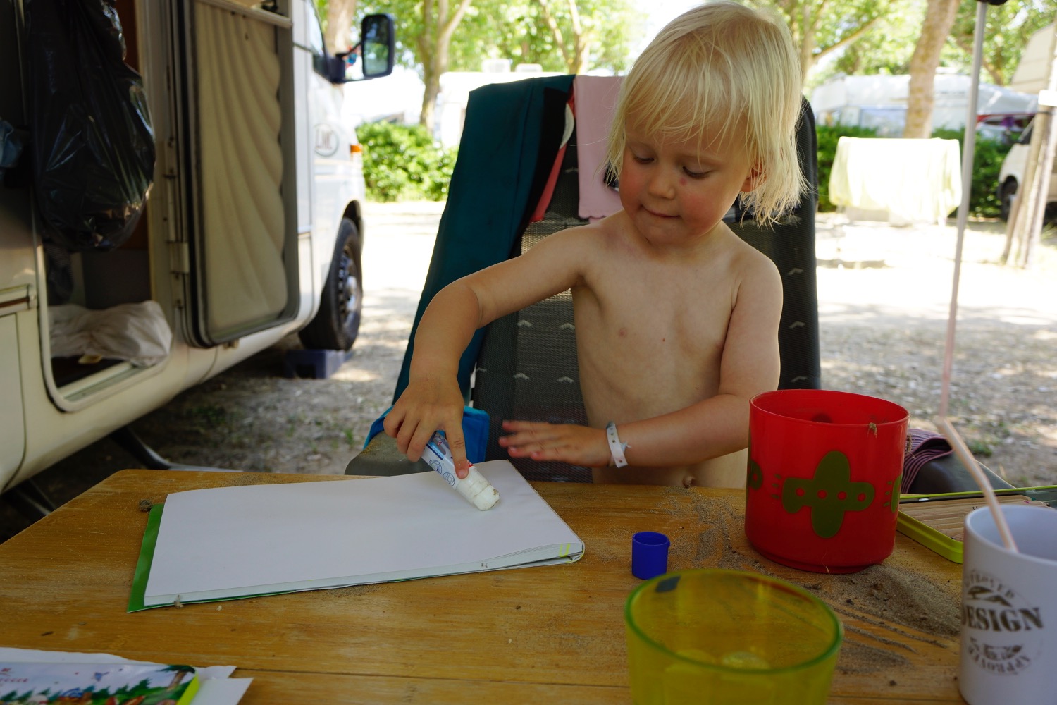 Der richtige Campingplatz war dann auch wirklich schön mit Pool, Trampolin und ruhigen Stellplätzen. Kurz nach der Ankunft hat Hannah dann auch Bekanntschaft mit Jonas (4) gemacht. Die beiden sind aus dem gleichen Holz geschnitzt und haben sich sofort prima verstanden. Beide waren sichtlich froh einen Spielkameraden im gleichen Alter zu haben und sind in jeder freien Minute gemeinsam über den Campingplatz gezogen. Auch mit den Eltern haben wir uns gut verstanden und Moritz hat sich über den kleinen Yannik (12 Monate) gefreut. Sehr entspannend wie alle vier Kinder in der Hüpfburg waren und wir davor in Ruhe quatschten konnten.