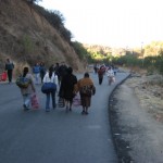 Am naechsten Morgen sind wir also frueh los mit dem Bus um nach Potosi zu kommen. Nach nur 20min Fahrt hiess es dann austeigen und “caminar”. Wir sind nur bis kurz vor die Blockade gefahren worden und mussten dann ca 2km laufen bis wir an die andere Seite der Strassenblockaden kamen. Lustig war es zu sehen wie die Bolivianer aus der Situation das beste machten: Auf beiden Seiten warteten Taxis und Kinder mit Schubkarren, die das Gepaeck fuer ein paar Bolivianos transportierten. Auf der anderen Seite angekommen mussten wir dann erstmal eine Stunde auf den anderen Bus warten, bevor es dann endlich weiter nach Potosi (auf der normalen Route) ging.
