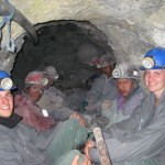 Nachdem wir uns mit Schutzkleidung, Helm und Lampe ausgeruestet hatten ging es in die Miene. Dort hatten wir zunaechst eine Begegnung mit einem ziemlich betrunkenen Kumpel, welcher mit einer Dicken Backe voller Koka-Blaetter uns alles moegliche erzaehlen wollte. Wir haben nur das verstanden, was der Guide uns uebersetzt hat und das war schon ziemlich beeindruckend.