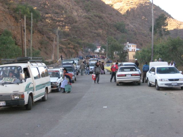 In Sucre haben wir uns den vielen Taxifahrern verwaehrt (irgendwie sahen alle Taxen hier so wenig offiziell aus) und sind der Menge an Einheimischen hinterher zum Bus gegangen. Fuer 30c sind wir dann ins 5km entfernte Zentrum gefahren.