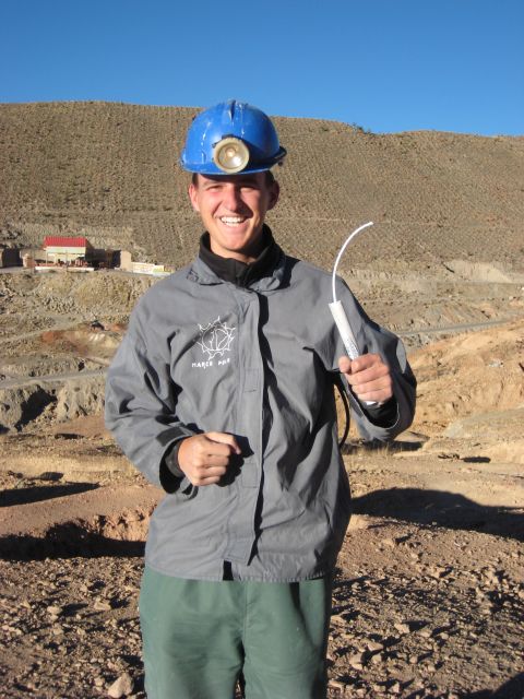 Danach sind wir noch tiefer in die enge, niedrige Miene, inklusive einer Kletterpartie in eine tiefere Ebene. Dort angekommen sind wir dann auch auf die Gruppe Kumpels gestossen. Die haben uns dann erstmal alle in einen Seitenschacht geschickt, weil sie gerade 11 Dynamitstangen gezuendet hatten. Also wir in den Schacht, Augen und Ohren zugehalten und mitgezaehlt. Ein sehr mulmiges Gefuehl, wenn man gleichzeitig an den Sicherheitsstandard vor Ort denkt… Nachdem wir noch etwas mit den Kumpels gequatscht hatten sind wir dann auch wieder aus der Miene raus. Wir waren froh wieder Tageslicht zu sehen. Draussen haben wir dann auch noch eine Stange Dynamit hochgehen lassen… sehr maennlich, aber unspaektakulaer. 😉