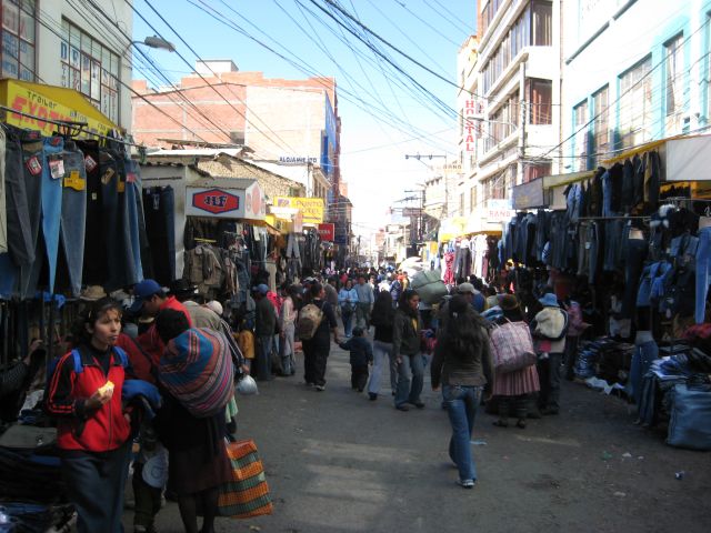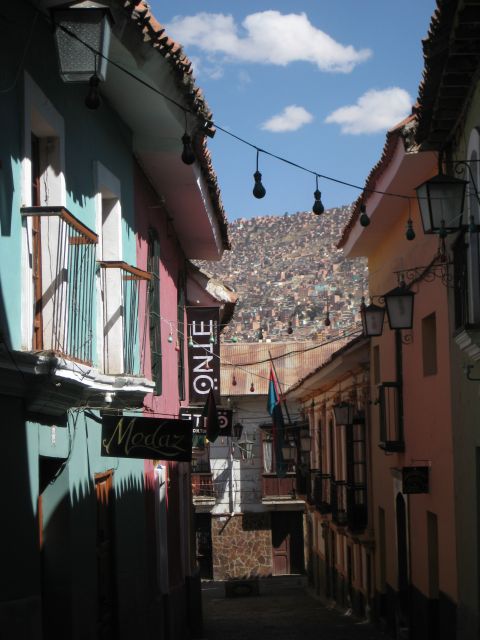 Eigentlich wollten wir am naechsten Tag schon wieder weiter, bis wir von den Strassenblockaden rund um die Hauptstadt erfuhren. Alle Ausfallstrassen waren durch Arbeiter blockiert aus Protest gegen irgendeine Regierungsentscheidung. Wann die Blockaden aufgeloest werden konnte uns keiner sagen. Also mussten wir wohl einen Tag laenger bleiben… Am naechsten Tag haben wir uns im Reisebuero dann nochmals ueber die Situation erkundigt und erfahren, dass es doch ein Busunternehmen gibt, welches nach Potosi faehrt (angeblich ueber eine andere, laengere Route).