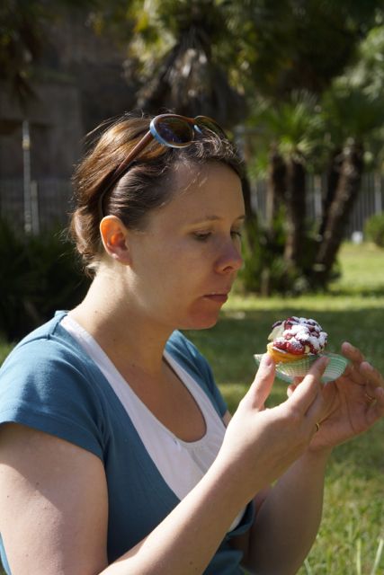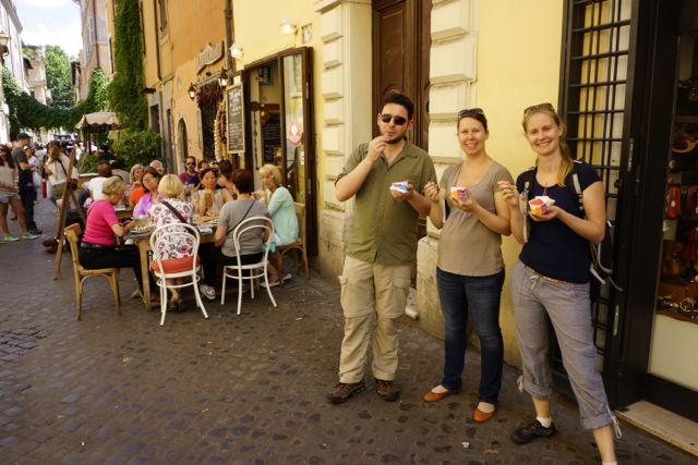 Was neben den tollen Sehenswürdigkeiten der Stadt noch erwähnt werden muss ist das tolle Essen in Rom. Dank Patrizia haben wir die beste Eisdiele entdeckt (Via delle Lugaretta 96, Trastevere) sowie den besten Konditor der Stadt (Pasticceria Regoli (1916), Via delle Statuto 60, in der Nähe von Santa Maria Maggiore) und der Top 10 Reiseführer hat uns 3 leckere Abende beschert und von uns somit die Essenskompetenz zugesprochen bekommen (Pizza in Trastevere, Klassische Römisch bei Del Angelo (ebenso Trastevere) und de Augusto (nördlich des Vatikans)).