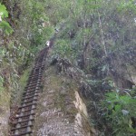 Von Ollanta aus sind wir morgens mit dem Zug nach Aguas Calientes gefahren. Da wir lieber fruehmorgens nach Machupicchu wollten haben wir den Tag genutzt und haben Tickets gekauft und uns das Staedchen angesehen. Das bietet allerdings nicht viel ausser kleinen Laden, Cafes und Restaurants. Deshalb haben Wibke und ich beschlossen den Berg Putucusi zu besteigen, von dem man einen guten Blick auf Machupicchu hat. Der Aufstieg dauerte weniger als 2 Stunden und ging Stufen, Stock und Stein und vor allem Leitern (siehe Bilder). Der Ausblick hat allerdings fuer die Anstrengung entlohnt. Markus ist zu Hause geblieben und hat seine Kraefte geschont sowie die Toilette bewacht. Ansonsten blieb der Tag ereignislos. Ausser der Tatsache, dass der Bankautomat kein Geld mehr hatte, was bei vielen Touristen zu kleinerer und groesserer Verzweiflung gefuehrt hat.