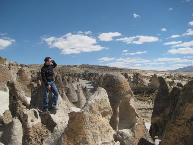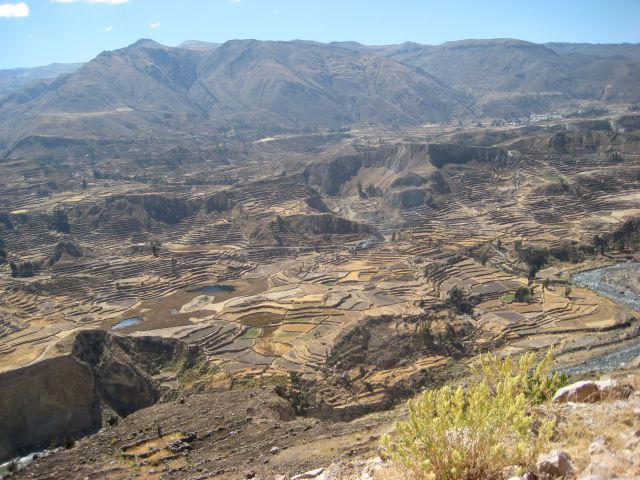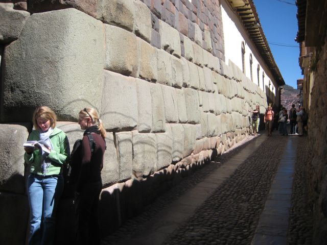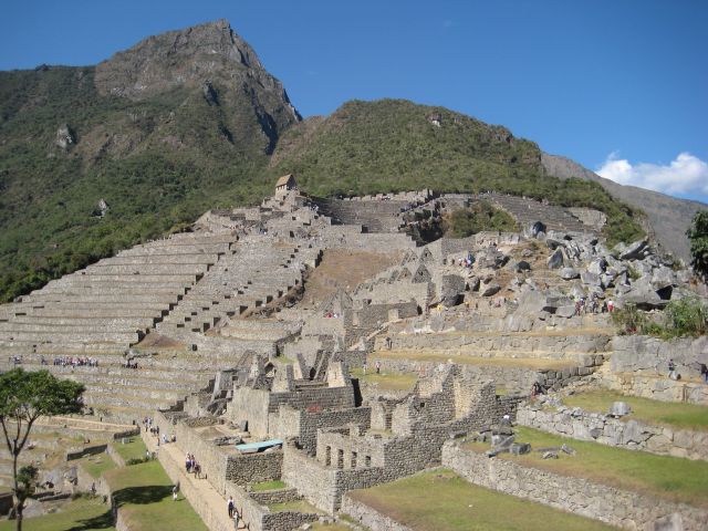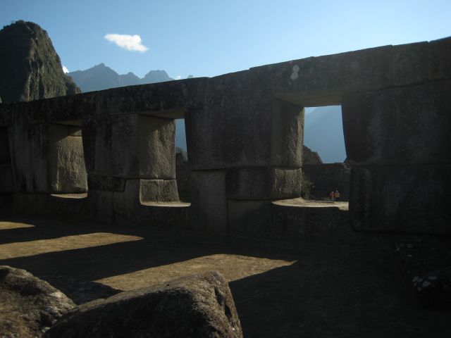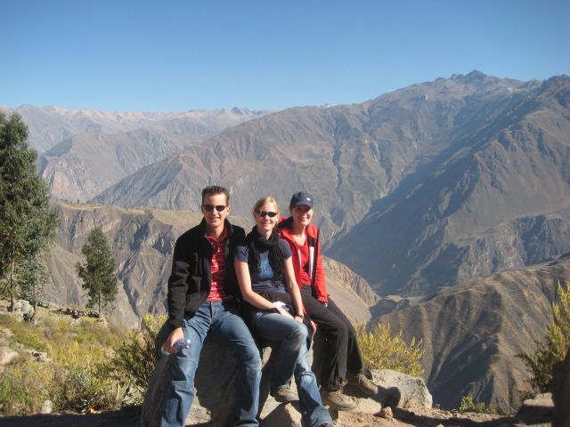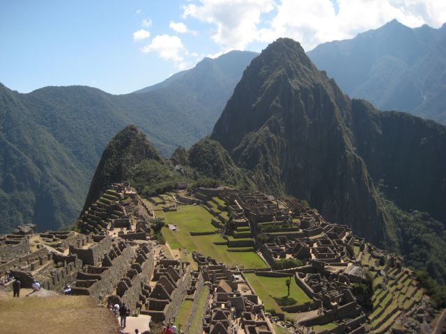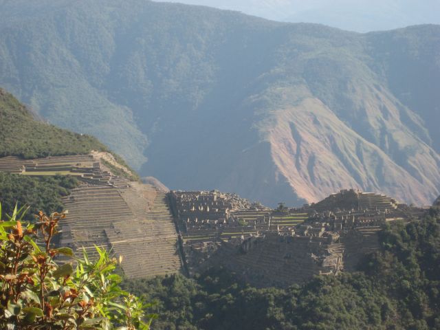 Am naechsten Tag standen wir mit ca 600 anderen Touristen um 5.00 Uhr morgens an der Bushaltestelle und sind nach Machupicchu hochgefahren. Das fruehe Aufstehen hat sich gelohnt, denn so konnten wir noch den Sonnenaufgang sehen und waren anfangs auch noch verhaeltnismaessig alleine und ungestoert. Machupicchu ist eine noch recht gut erhaltene, komplette Inkastadt. Auch wenn ich der Meinung bin, dass sie viele Mauern wieder mit den herumliegenden Steinen aufgeschichtet haben. Aber nichtsdestotrotz ist es beeindruckend. So gegen 12 Uhr wurde es dann sehr voll und auch recht heiss und wir haben uns wieder auf den Rueckweg gemacht. In Aguas Calientes haben wir dann noch was gegessen und mit Schrecken festgestellt, dass unsere Kamera weg war. Nachdem der Rucksack x-mal durchsucht wurde, gab es nur noch die Moeglichkeit, dass sie oben beim Eingang zu Machupicchu liegen geblieben ist oder im Bus. Also ist Markus nochmal hochgefahren und Wibke und ich haben auf unseren Bus gewartet. Zufaellig hatte sich Wibke die Nummer gemerkt. Und da lag sie dann auch noch. Unschuldig zwischen Sitz und Wand. Den Schuh muss ich mir wohl anziehen. Die Erleichterung koennt ihr euch vorstellen! Da waren seit Kuba alle Bilder drauf, natuerlich ungesichert. Das haben wir dann schnell noch nachgeholt.