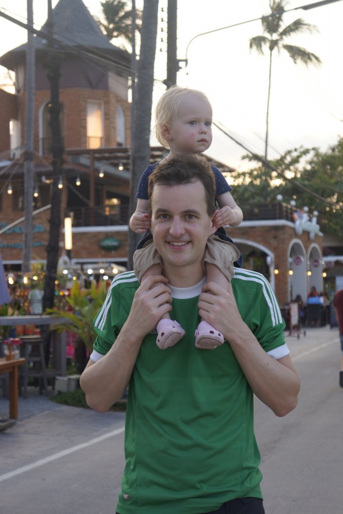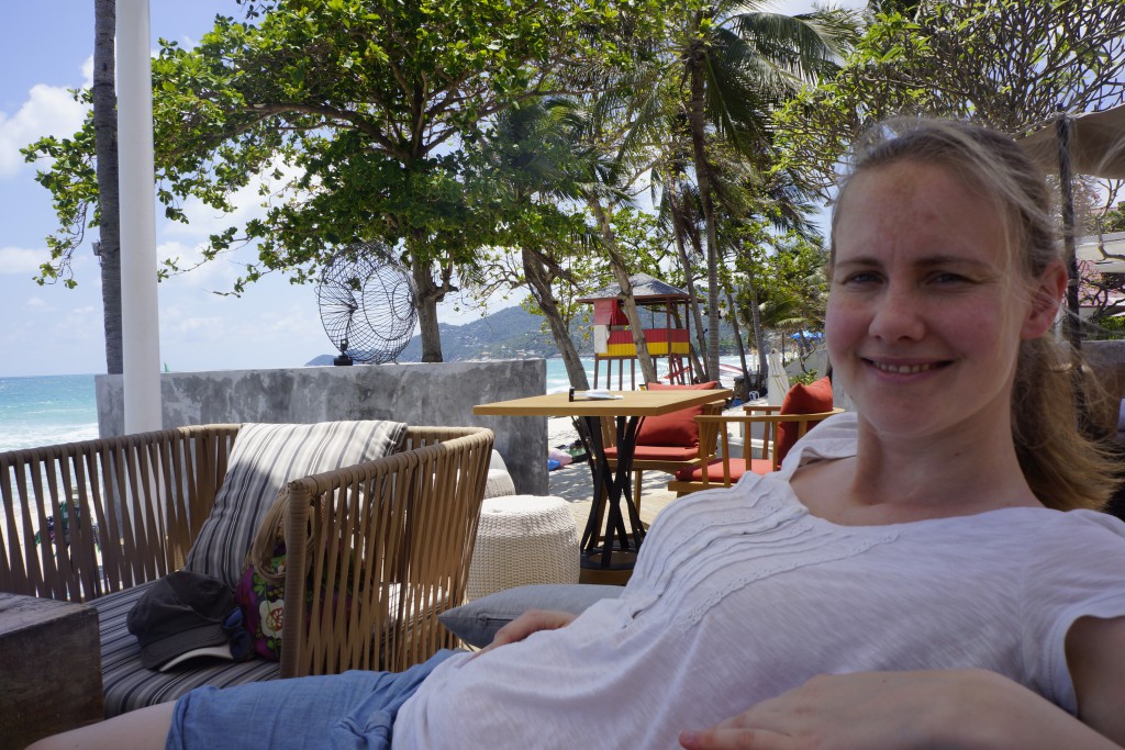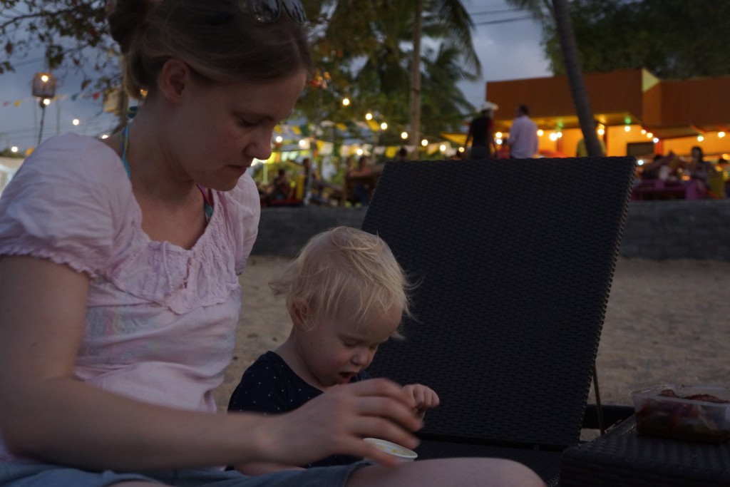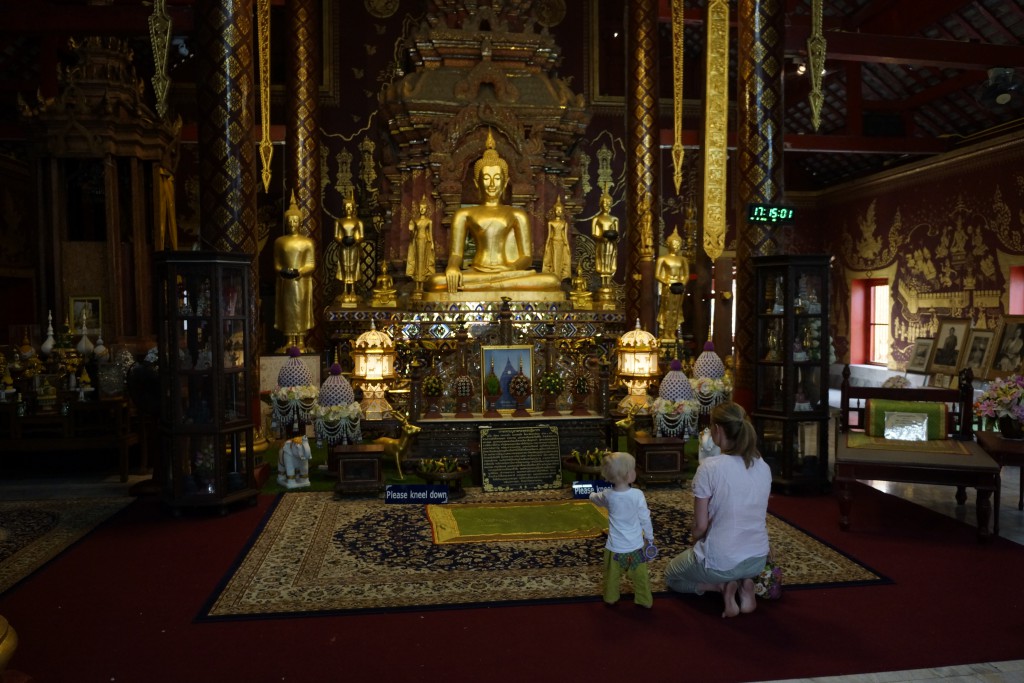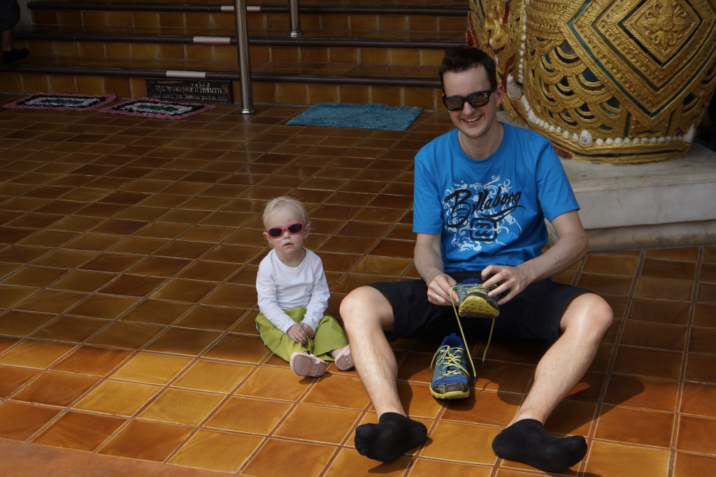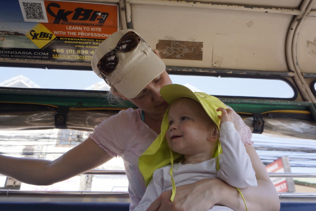 Alle Thais sind kinderlieb, aber sie überschlagen sich fast, wenn sie ein kleines, blondes Mädchen sehen. Sie bekommt Bananen und Kekse geschenkt, wird von allen angelächelt, angewunken und an Armen und Händen angefasst. Wenn wir Essen gehen, dann ist sie mindestens einmal bei jemand auf dem Arm, der dann auch gleich ein Foto machen muss. Sie macht es gut mit und wenn sie keine Lust hat, dann verzieht sie keine Miene. Das wird international verstanden.