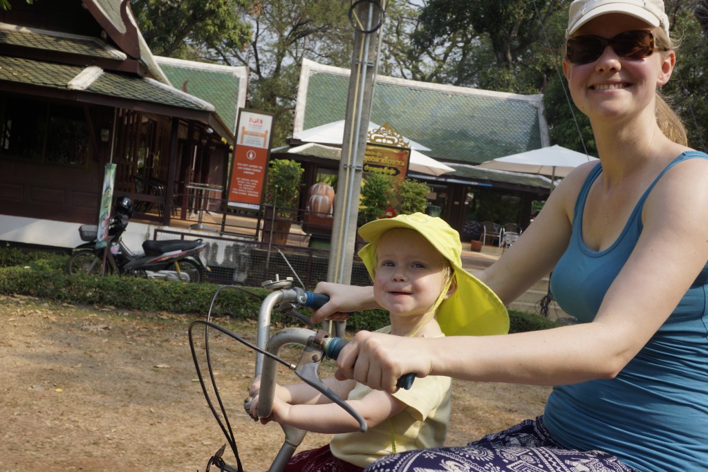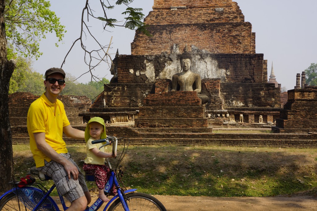 Nächste Station der Reise waren die Tempelanlagen von Si Satchanalai und Sukhothai. Ähnlich wie Angkor Wat, aber nicht ganz so imposant, liegen dort die alten Tempelanlagen in großen Arealen. Die meisten Verzierungen wurden an diesen Tempeln aber nicht in den Stein gemeißelt, sondern aus Stuck hergestellt. Deshalb sind oft nur noch die Ziegel übrig und die ganze Pracht kann man nur noch erahnen. Si Satchanalai haben wir zu Fuß erkundet, in Sukothai haben wir dazugelernt und sind mit dem Rad gefahren. Das war auf jeden Fall ein Highlight für alle.