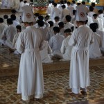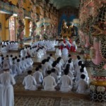 Da die Stadt nicht viele bis keine Sehenswuerdigkeiten hat sind wir am zweiten Tag zu den Tunneln gefahren, die waehrend des Krieges genutzt wurden und an einem Tempel vorbei, der irgendwas mit Victor Hugo zu tun hat und sehr nach einer Sekte aussieht. Die Religion des Caodaismus ist allerdings hier im Sueden von Vietnam weit verbreitet. Wir konnten dem Gottesdienst zuschauen. Es war wie in einem Zoo bei der Tierfuetterung zuzuschauen – ein komisches Erlebnis.